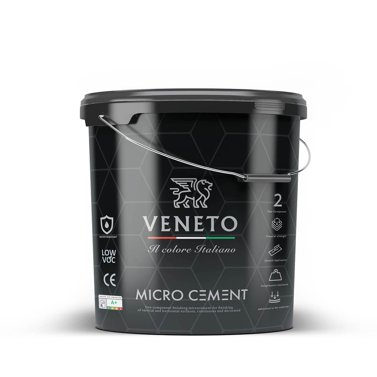 Il Microcemento bicomponente Veneto è un prodotto che unisce funzionalità e design di fascia alta. Si caratterizza per la superiore resistenza meccanica nella realizzazione di finiture decorative sulle pareti. È idoneo per l’applicazione come rivestimento sottile continuo su pareti e superfici non percorribili. Il Microcemento bicomponente Veneto rappresenta un sistema di rivestimento polimerico cementizio liscio con uno spessore di soli 1-2 mm, grazie alla sua ottima adesione su pavimenti, pareti, scale, facciate, cucine, bagni, mobili, interni ed esterni. Con il Microcemento Veneto è possibile creare dichiarazioni di stile audaci, giocando con diverse tonalità di cemento, colore e struttura, nonché texture naturali. La durezza superficiale è paragonabile a quella di un pavimento in legno con 43N/mm2. Questo materiale naturale rispetta gli standard ambientali ISO 14000.