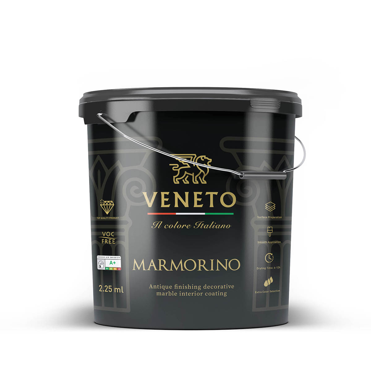Veneto Marmorino deve essere mescolato accuratamente con una spatola senza diluizione prima dell’applicazione. Quindi, viene applicato sulla superficie con una spatola d’acciaio come primo strato. A seconda della temperatura ambientale, il secondo strato può essere applicato dopo 6-8 ore. Il secondo strato deve avere uno spessore adeguato alla trama e al motivo desiderati. Distribuire il prodotto con una spatola d’acciaio come secondo strato, pressandolo uniformemente in varie direzioni.